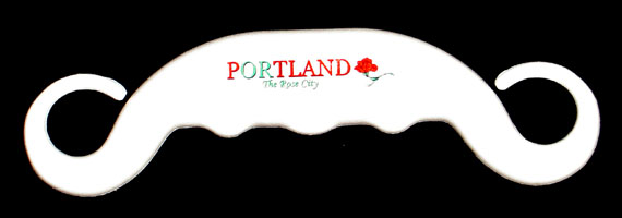 It looks like a handlebar moustache, but take Grabby off of your refrigerator and you've got a handle to carry things. You can drape things over the curls at either end. Using it as a handle, you can carry up to ten full plastic grocery bags in one hand; or two gallon cans of paint; or several bags from your shopping exploits in downtown Portland.